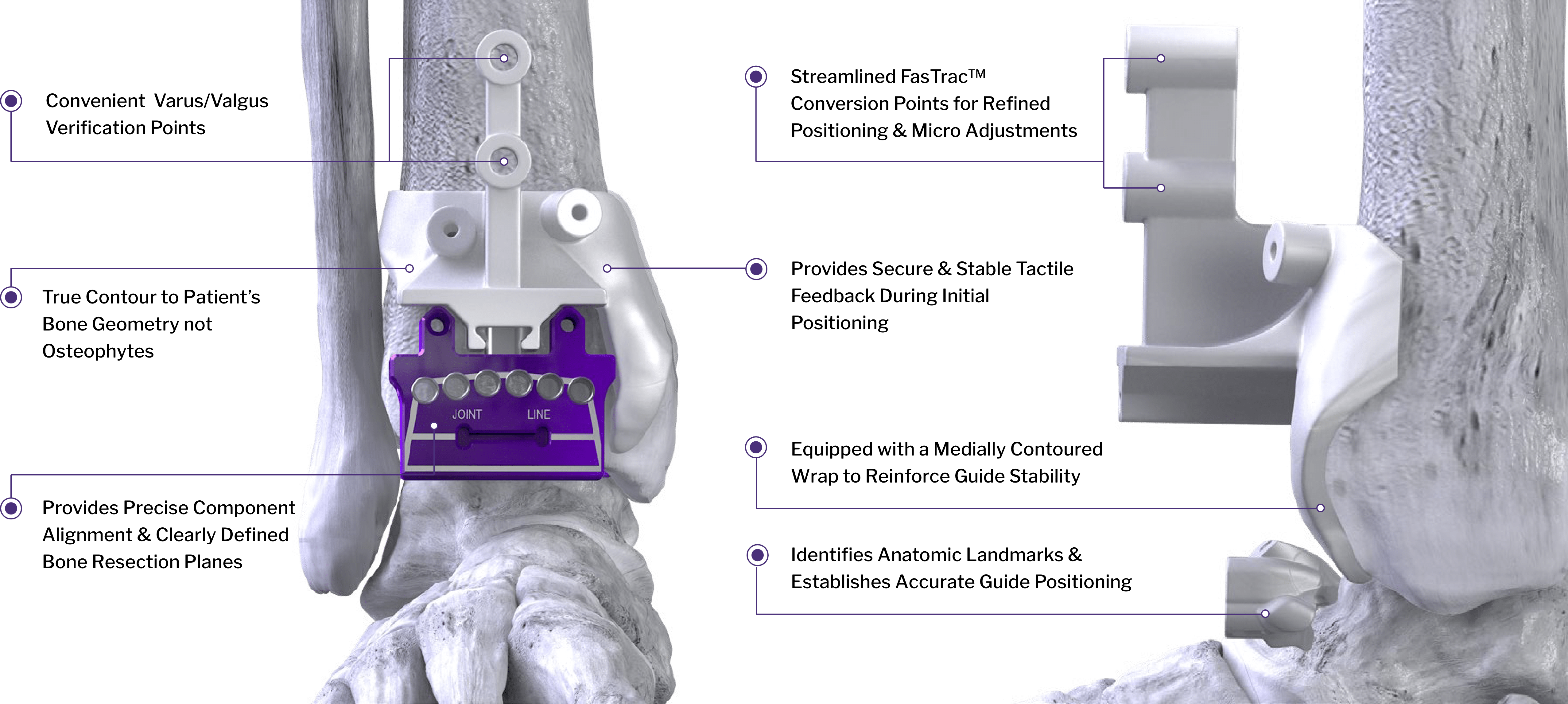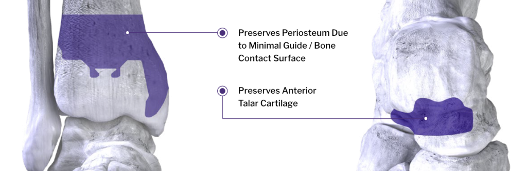 Preserves periosteum and anterior talar cartilage during joint preparation due to minimal Guide/bone contact interface