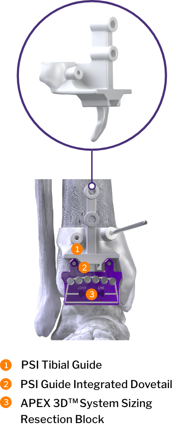 The MAVEN PSI System utilizes surgeon inputs and computer assisted processing technology to achieve accurate tibiotalar alignment and implant placement to reduce potential for eccentric loads, wear debris and osteolysis.2, 3